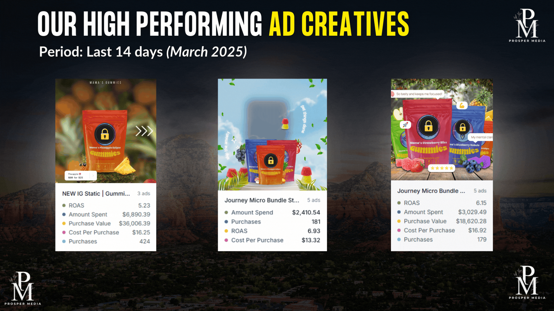 We do both! We’ll use your existing assets and also create high-performing static, UGC, and video ads to match your budget and growth goals. Additional fees apply for custom creatives.